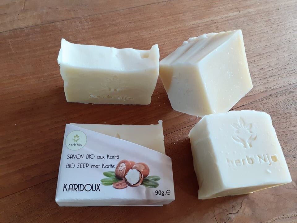 La douceur d’un savon herb’Njo bio renforcée par du beurre de karité (bio & fairtrade) et de fleurs de souci, accompagnée d’un sillage citronné (huiles essentielles) pour l’éveil des sens